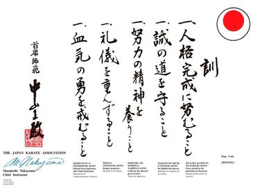 Training is structured into three main elements - Kihon (fundamental techniques), Kata (forms) and Kumite (sparring). Each element has a range of complexity to suit the different levels or grades of students. Kumite is introduced as basic blocking and counter-attacking but then progresses to free-sparring, which develops the timing, reflexes and coordination necessary for self-defence and competition. There is a grading syllabus for all levels . Our gradings are challenging but achievable, and passing them is meaningful and internationally recognized.